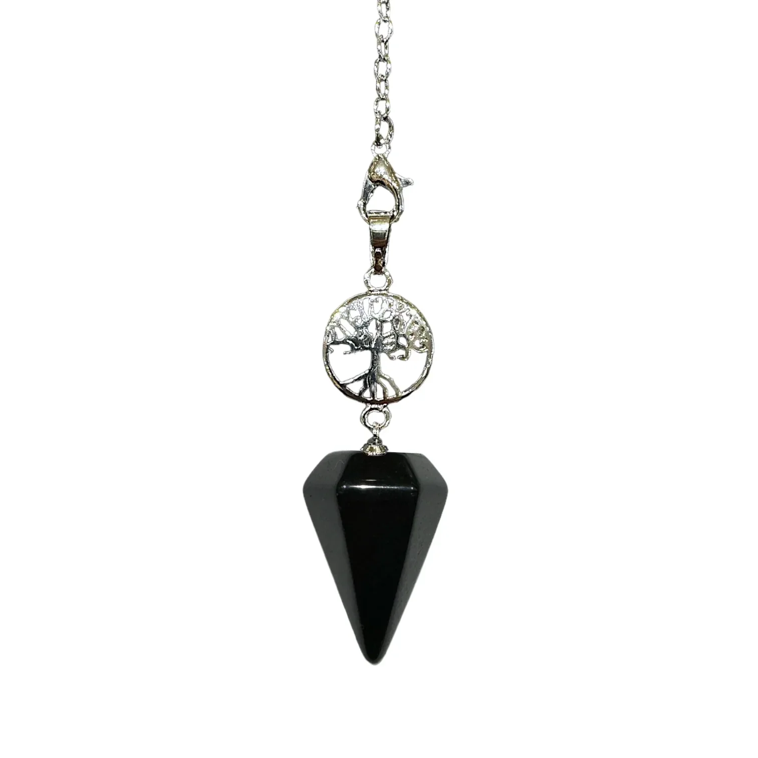 Pendule en pierre naturelle avec chaine en acier inoxydable Forme : Cône FacetteLongueur : 27 centimètres