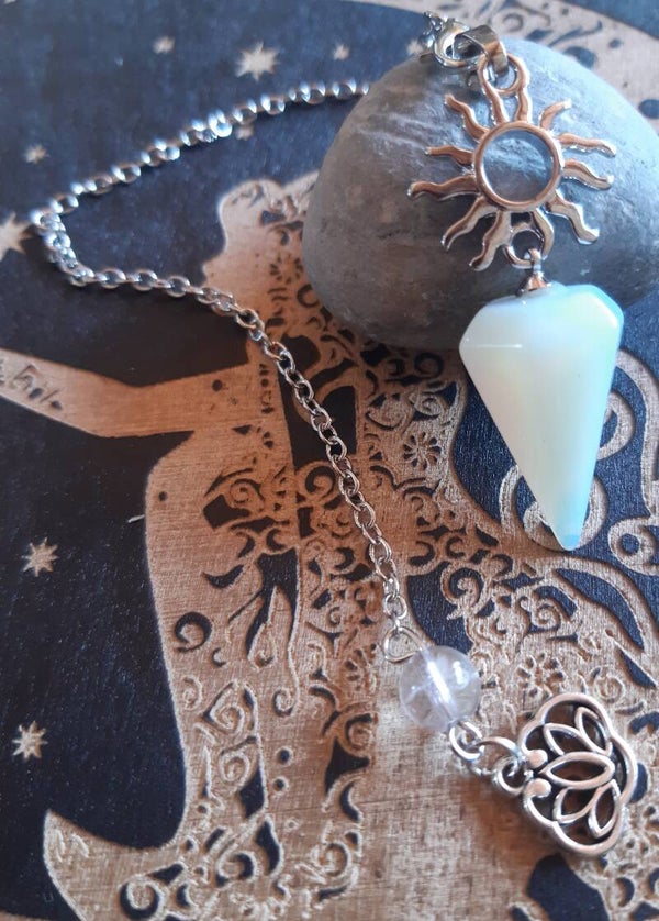 Pendule en pierre naturelle avec chaine en acier inoxydable Forme : Cône FacetteLongueur totale : 27 centimètres